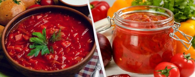 Auf dem Höhepunkt der Gemüsesaison raten wir Ihnen, eine hausgemachte Zubereitung für ukrainischen Borschtsch zuzubereiten. Für vielbeschäftigte Köche ist dies eine echte Rettung. Die Anwendung ist sehr einfach: Brühe vorbereiten und Kartoffeln kochen, bis sie gar sind, dann die Konserven und den Kohl dazugeben, ein paar Minuten kochen und fertig ist der Borschtsch.