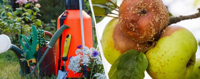 Um alle Äpfel bis zum Frost frisch zu halten, behandeln Sie Apfelbäume mit einer speziellen Mischung. Wie behandelt man Obstbäume gegen Fruchtfäule / Collage